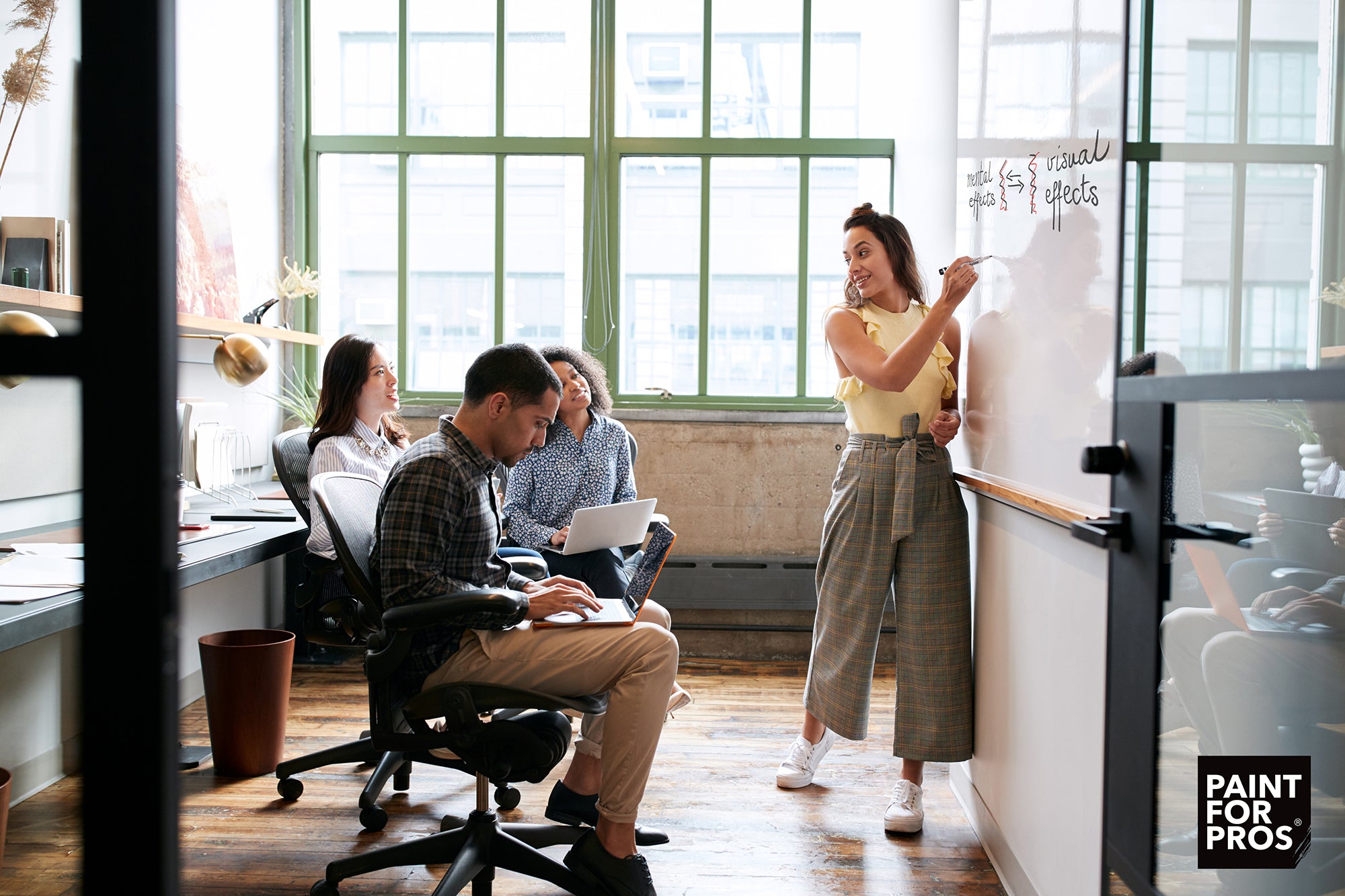 Creative and inviting offices and meeting rooms encourage collaboration and creative thinking. Design projectable, magnetic and writable surfaces to make the most of walls and spaces.